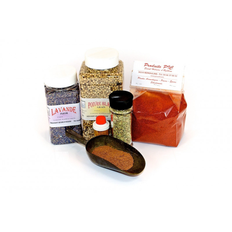 composé de girofle en poudre, poivre, cardamome, gingembre muscade, anis, badiane, piment doux et cannelle sert principalement à l'aromatisation du pain d'épices