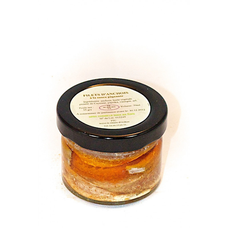 filets d'anchois à la sauce piquante en pot verre (55Gr)